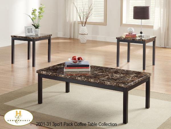 2601-31 | 3-Piece Occasional Tables with Faux Marble Top | Cocktail Table: 48 × 24 × 16H End Table: 22 × 20 × 21H |