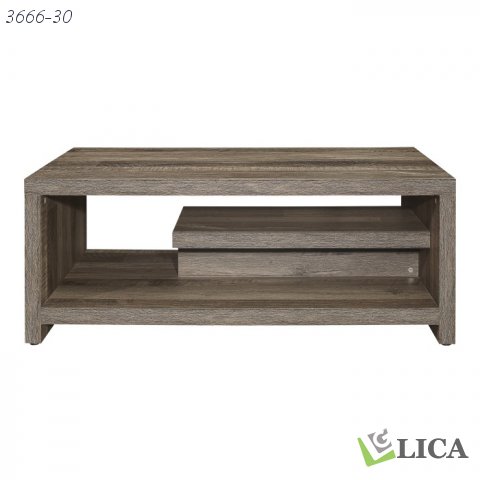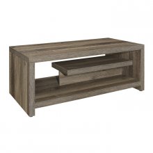 The modern styling of the Danio Collection is achieved by blending the natural look of wood grain and the clean lines of contemporary design to create an occasional group that will fit right in with your home’s rustic modern aesthetic. The defining lines of the cocktail table’s profile effectively accent the printed barnwood grain on melamine veneer. Coordinating end table and entertainment wall unit is also available.