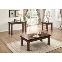 Transitionally styled with a burnished brown finish, the Schleiger Collection features bold accenting for your living room. Sturdy legs support the metal and rivet banded table tops of the cocktail table. Sofa table and end table are also available.