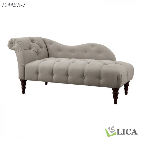 The elegant curve of the Blue Hill Collection creates an air of sophisticated modern traditional styling perfect for your refined decorative preference. Contoured for your ultimate comfort and trimmed with traditional accents, the timeless look will be a wonderful addition to your boudoir or living room. Brown fabric covers the chaise and features button tufting, rolled top arm, curved side panel, and espresso-finished turned wood legs.