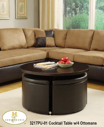 3217PU-01 | Round Gas-lift Coffee Table/Dinette Table with 4 Ottomans. | 36 x 36 x 20/30H |