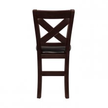 Adorn your dining area with Crown Point Collection. This grand scale casual dining in warm merlot finish is as strong and durable as they are stunning. Table top is constructed of mango veneer with strong support tapered legs. Attractive X-back dining chair with comfortable leather-look brown seat completes the unsophisticated streamlined look.