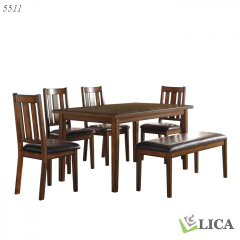 - Includes dining room table, 4 chairs and bench