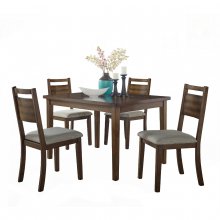 A warm finish and modest scale makes the cozy Cadieux five-piece dinette perfect for your space. A soft fabric seat is a light contrast to the rich tonal quality of the wood veneer finish. Make your house a home with this inviting dinette set.