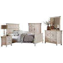 The traditional shape and accenting of Craftsman style are captured in the design of the Terrace Collection. The antique white finish of the Eastern King bed that accentuates the natural characteristics of the solid poplar wood also lends to the classic design.