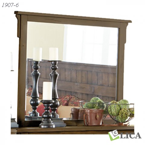 The traditional shape and accenting of Craftsman style are captured in the design of the Terrace Collection. The mirror has a rustic burnished oak finish that accentuates the natural characteristics of the solid poplar wood.