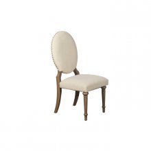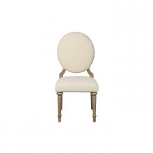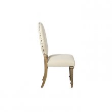 The intersection of traditional formality and casual elegance is perfectly captured in the design of the Avignon Collection. Oak veneer is highlighted with a natural taupe finish that is complemented by the natural toned fabric of the accompanying round-back side chairs and wing-back host chairs. Dark nailhead defines the chair profiles while also providing contrast to the light fabric. Also available is a functional server that features drawer, shelf, wine rack and behind glass door storage.