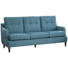 Transitionally styled for placement in a number of home settings, the Cagle Collection is covered in blue tone fabric with espresso finished legs. The gentle forward slope of the sofa’s curved arm paired with the ample seat back creates a comfortable platform, while the reversible seat cushion provides functional convenience. Coordinating chair and love seat are available. The collection is offered in two additional colors – grey and chocolate.
