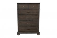 Classic accenting is paired with rusticated styling to create the look of the Motsinger Collection. Solid acacia and acacia veneers are finished in a wire-brushed rustic brown, perfectly accenting the wood’s distinct grain. The brown fabric headboard features button tufting and serves as a complementing contrast to the finish of the collection. Bun feet provide support to each piece of the collection. Knob and bar hardware front the drawers of the dresser, chest, and nightstand.