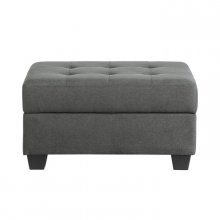 The Dunstan Collection ottoman is covered in dark gray upholstered fabric, a perfect accent to your home’s transitional aesthetic. The unit features hidden storage, perfect for discretely storing decorative blankets or pillows within your living room.