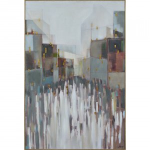 Style: OL2025 | Dimensions : 40\"W x 60\"H x 2.25\"D While evocative of a bustling city street, this painting has a zen quality that permeates the contemporary interior. Featuring a neutral-toned colour palette, it integrates seamlessly into the room while the touches of gold leaf add a vibrant energy. Created on a cotton canvas, it is equally fitting for placement in the bedroom or living room space.