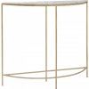 Style: TA435 | Dimensions : 40\"W x 35\"H x 12\"D The contemporary entryway is enveloped with lustrous elegance with this demi-circle console. Thanks to its natural white marble, the pieces that rest upon it will pop all the more. With brass plated metal legs, it offers both reliability and regality to the home.