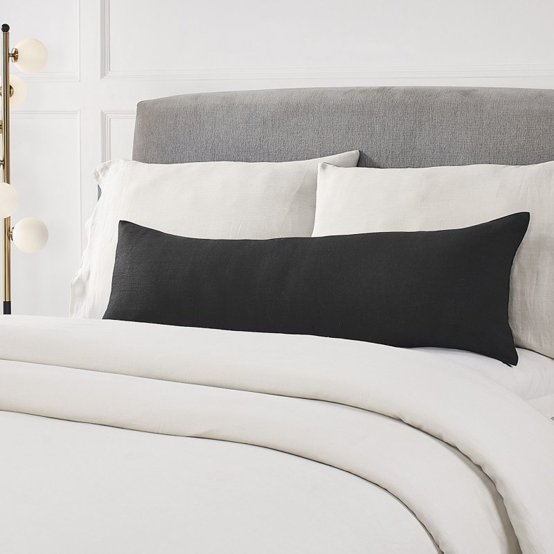 Style: PWFL1356 | Dimensions : 40\"W x 13\"H This lumbar pillow's basic black construction makes a bold impression in the industrial style interior. Lengthy in structure, it adds versatility to the decor arrangement with ease. Made from 100 percent linen, its sleek tone is softened through its natural fabric.