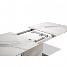 - Complementary white high-gloss extension leaf extends table from 63 to 78.75 in