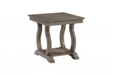 oak veneer is a subtle bisque finish. The lower shelf base of the occasional tables provides