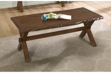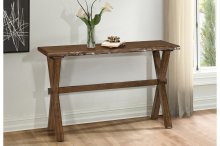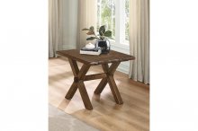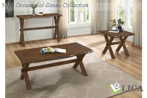 An old-world look with new-world craftsmanship, the Sansa occasional collection features a single natural cut edge, giving you the rustic appeal of the reclaimed barn wood style but modernized with smooth edges and a warm oak finish. A secure X-shaped base with an additional cross-brace ensures that the Sansa coffee table will be a sturdy cornerstone of your home for years to come. Coordinating end and sofa tables also available.