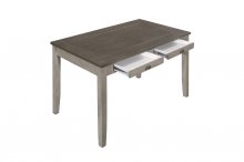 With a design that pairs well with your preference for transitional country styling the Brightleaf Collection will provide a functional addition to your casual dining space. The two-tone finish, over ash veneer, of the counter-height dining table features a brown tabletop and light gray base, with the color combination carrying over the coordinating counter height wood chair. The table’s apron features 4 functional drawers, each accented by antique brass-finished cup hardware, allowing for convenient storage of your tabletop accessories.