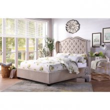 Modern traditional framing is utilized to create the look of the Waterlyn Collection. The high wing-back design of the fully upholstered Full bed features neutral toned fabric accented with profile-defining nail head trim and pleated button tufting, solidifying the traditional look of the Collection.