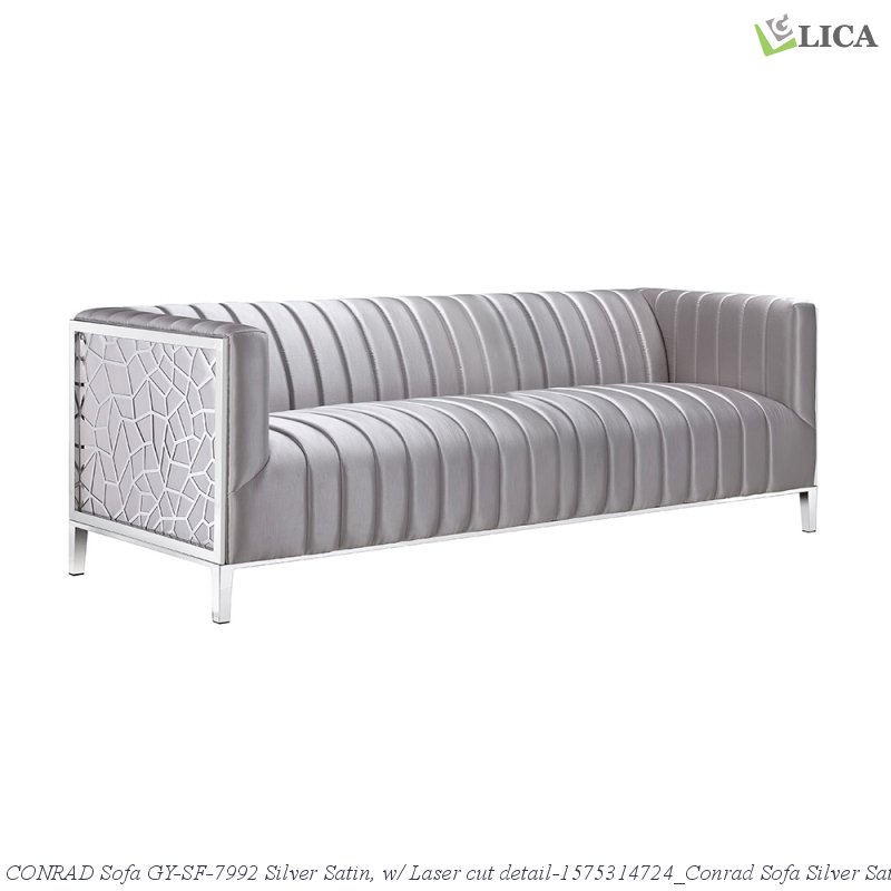ItemName:CONRAD Sofa GY-SF-7992 Silver Satin, w/ Laser cut detail