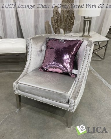 » tbl_xcellashowroom » LUCY Lounge Chair E-Grey Velvet With SS Legs LUCY