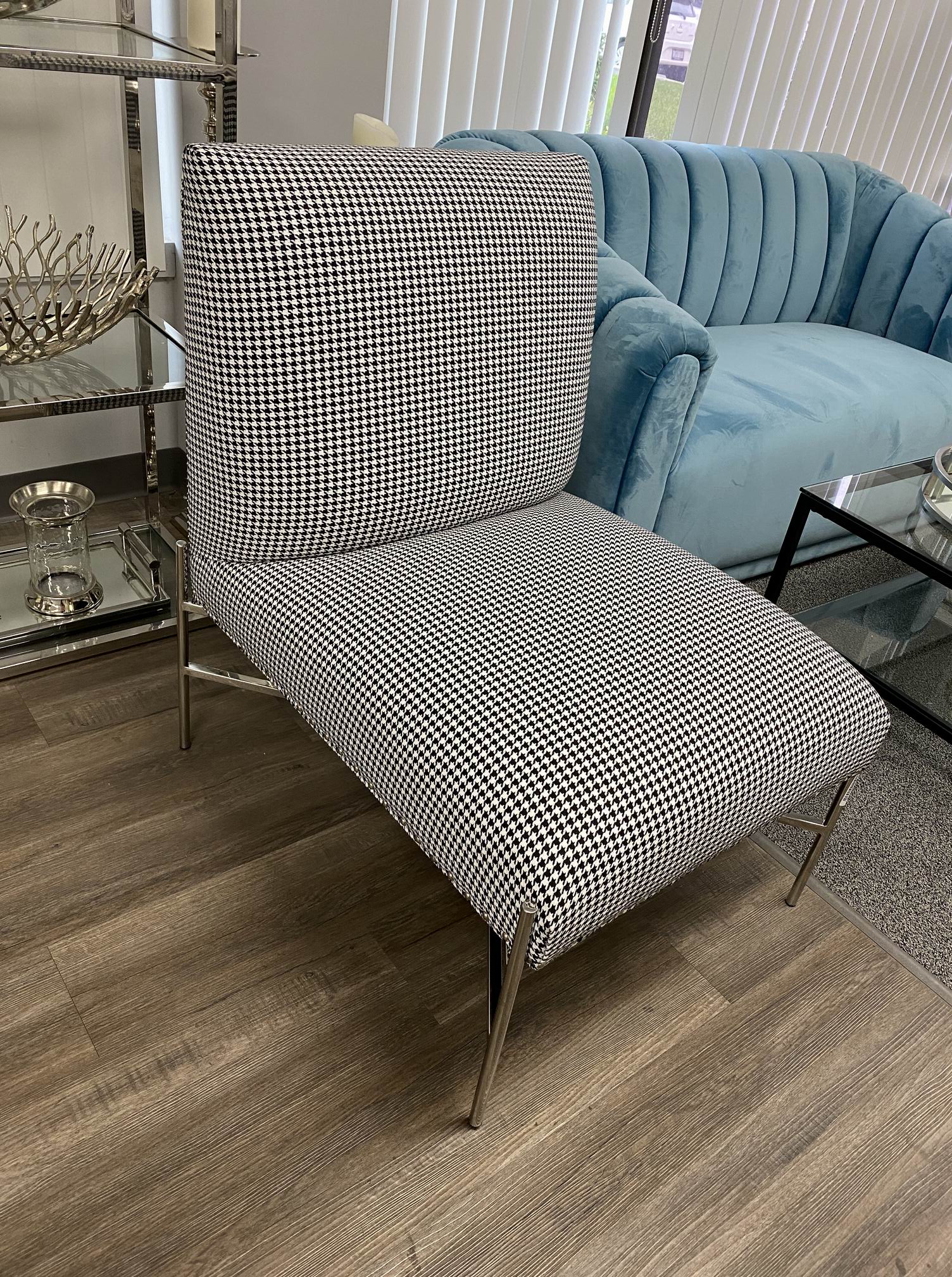 » tbl_xcellashowroom » BARRYMORE Lounge chair: Hound Tooth White and Black fabric color