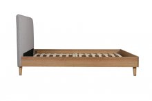 Sweet dreams begin with a well-crafted bed, which is why the Cassidy Bedroom Collection makes the perfect addition to your contemporary bedroom. Stylistically influenced by classic Mid-Century Modern elements, this bed features a functional low-profile platform design that allows you to skip the foundation or box-spring and rest your mattress directly atop the slats. The rails and footboard are finished in a natural brown wood with a distinctive grain finish, showcased to advantage by the juxtaposition of a grey fabric headboard for a fun two-tone and mixed media twist. With the Cassidy's fashionable combination of wood and and fabric blended with a neutral palette, the décor possibilities for your bedroom are endless!