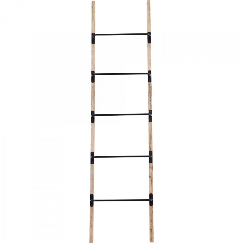 Style: SHE033 | Dimensions : 18\"W X 72\"H X 2\"D Bringing sleek style to industrial influence, this decorative ladder elevates and assimilates into the contemporary interior in the best way possible. Whether holding throw blankets in preparation for moments of comfort and calm, or resting solo for added dimension, its 72-inch height elongates the bedroom or living room wall it’s set against. Composed of mango wood with matte black powder-coated aluminum details, it brings together organic elements and bold design.