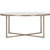 No embellishment is required to make this coffee table design gleam and glisten in the living room space. While the antique brass plated iron structure lends itself well to a mid-century modern interior, the white marble makes it equally suited for the contemporary home. Whether placed for purpose or polish, it elevates any space it enters. Product Details:
