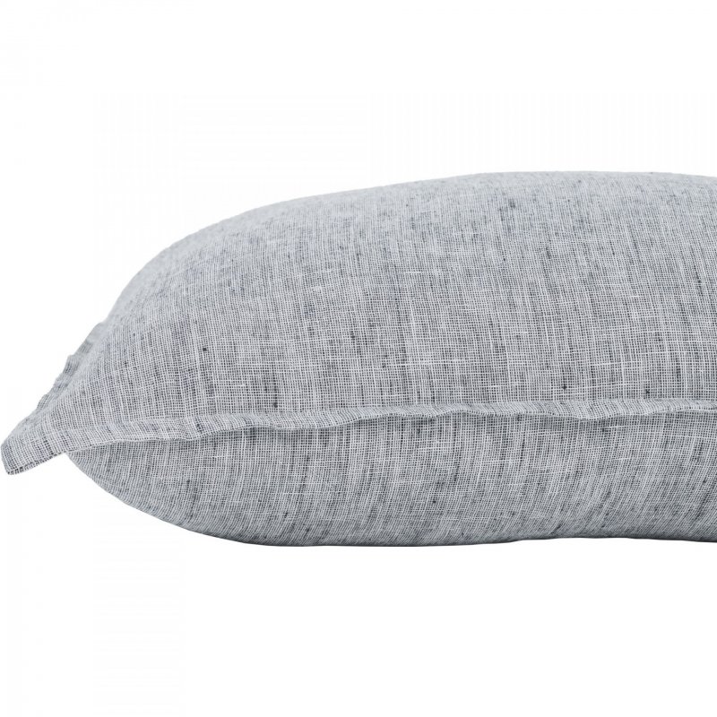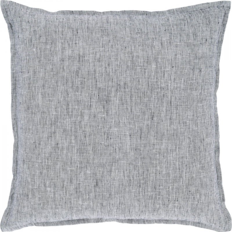Capable of fitting in any interior, in any arrangement, this throw-pillow holds an endless supply of versatility. Composed of linen with a down feather filling, its 20 by 20-inch build offers durability to take on everyday life not delicacy. Showcasing a subtle blend of navy blue and white it holds a unique hue that feels softer than the traditional dark palette.