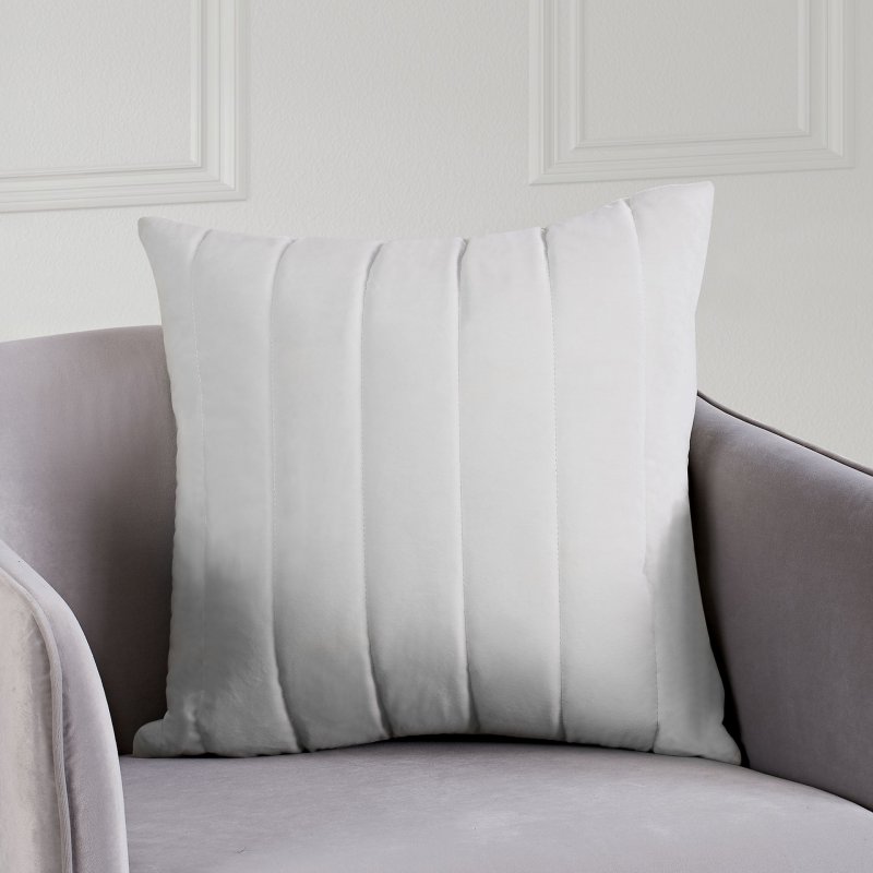 Style: PWFL1420 | Dimensions : 20\"W X 20\"H Ivory velvet fabric envelops the contemporary living space with a regal quality through this pillow design. Featuring subtle quilted stripe details, it contains character while maintaining simplicity. With a feather-down filling set inside its 20 by 20-inch form, it provides support and style equally.