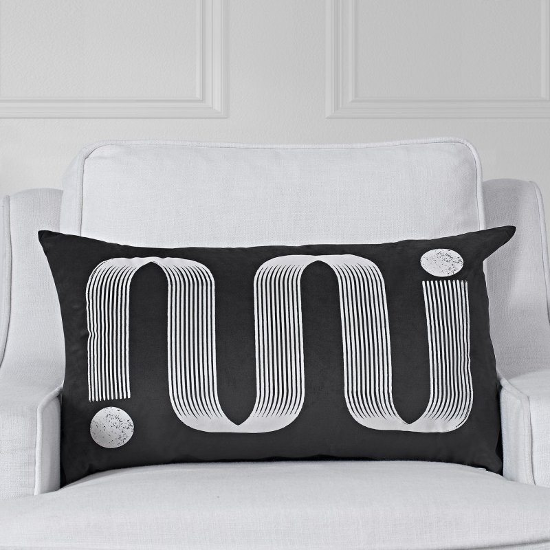 Style: PWFL1425 | Dimensions : 25\"W X 15\"H The captivating quality of abstract design is undeniable in this throw pillow design. No matter if it’s set solo on a sofa or arranged among several pillows and throws on a bed, its black velvet finish and white print details always take the focus. With a 25 by 15-inch structure and feather-down filling, it has the optimal composition for ease in styling and settling.