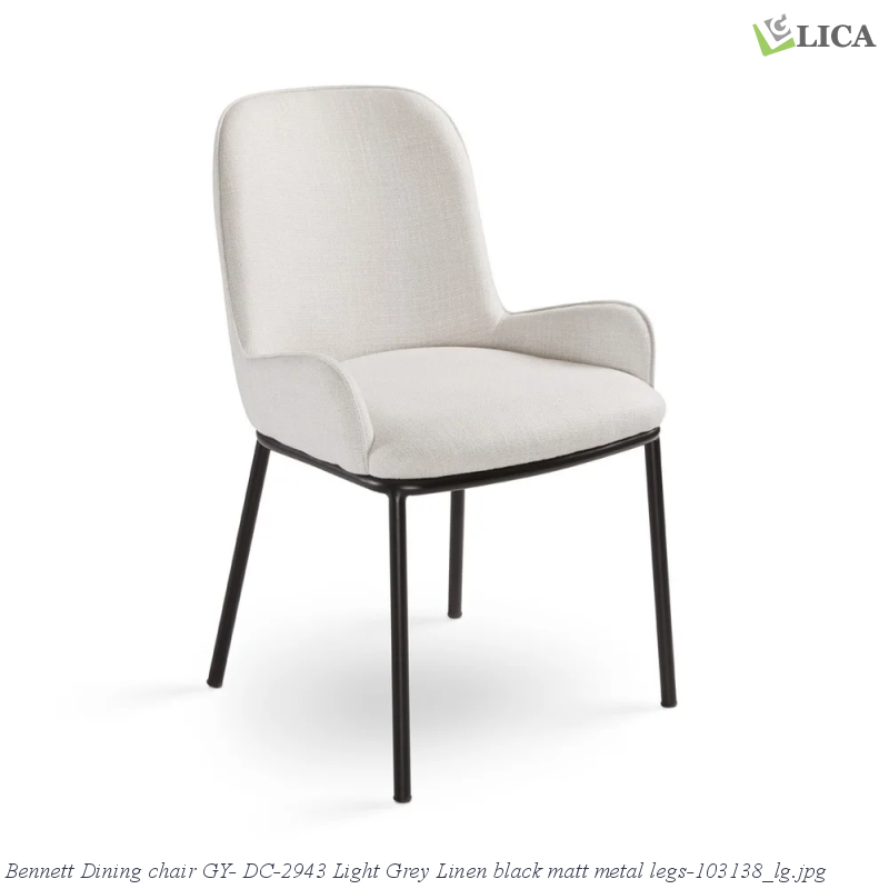 Description:Bennett Dining chair GY- DC-2943 Light Grey Linen black matt metal legs