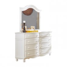 With a design as sweet as the name implies, the Clementine Collection will be a bright and classic addition for your bedroom sanctuary. The dresser features wooden knob hardware that stands boldly against its bow-front, while the additional decorative accents of framed bead-board paneling, turned feet and scalloped base further enhance the classic look of this lovely piece.