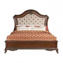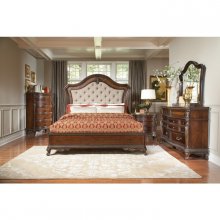 With styling that exemplifies traditional design, the Bonaventure Park Collection exudes sophistication and refined elegance. Cantered pilasters frame the serpentine fronted dresser, while egg and dart molding, acanthus leaf motif and bale, and button hardware lend to the traditional look. Burl inlay creates beautiful contrast to the gold-highlighted warm cherry finish.
