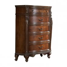 With styling that exemplifies traditional design, the Bonaventure Park Collection exudes sophistication and refined elegance. Cantered pilasters frame the serpentine fronted dresser, while egg and dart molding, acanthus leaf motif and bale, and button hardware lend to the traditional look. Burl inlay creates beautiful contrast to the gold-highlighted warm cherry finish.