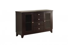 Daisy Collection combines superb visual appearance and fine quality that you need in your dining area. Three distinct elegant flared tulip bases support beveled glass tabletops on the rectangular and round traditional dining height tables. Additional offering is the trestle table with black glass insert. Dining height chairs feature clean lines and sleek curves; available in both white faux leather and dark brown faux leather. The set is constructed of hardwood solids and veneers in a refreshing espresso finish.