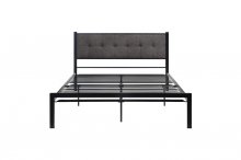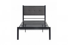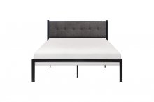 The design of the Samuel Collection pairs black metal support framing and a button-tufted headboard panel to create a versatile style perfect for your home. The gray textured fabric upholstery of the headboard panel provides classic accent to the black of the bed’s low-profile frame. The collection is offered in Queen, Full, and Twin.