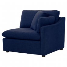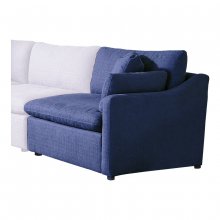 - Blue linen-like performance fabric upholstery