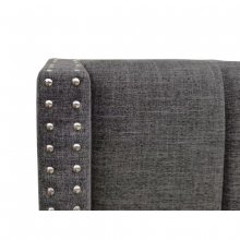 When you want your bedroom to look like it comes straight out of a magazine, you need the simple elegance of the Clara Bed. Fully upholstered in dark grey linen-like fabric, the padded mansion headboard has channel tuft detailing and silver-toned nailhead trim outlining the profile, guaranteeing visual interest with its polished charm. Sturdy hardwood and engineered wood frame construction atop exposed legs in a dark poplar finish provide long-lasting durability. The platfom design allows you to place your mattress directly on the raised slats and skip the foundation and box-spring altogether. This contemporary bedroom offering is more than a place to lay your mattress - let the Clara be your refuge.