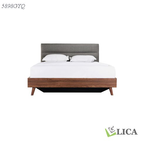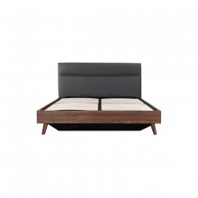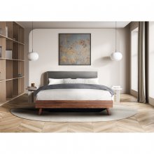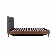 - Footboard and rails feature a 3D foil laminate faux walnut wood finish to contrast with upholstered headboard