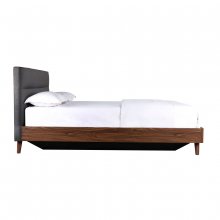 If you like a tidy and organized home, look no further than the Izzy bedroom collection. This stylish Queen Bed has Mid-Century Modern inspired charm with its angled legs, low profile platform design, and two-tone mixed media appearance, but it also boasts some futuristic function thanks to a gas lift storage frame. This hydraulic storage system allows you to lift your entire mattress up, giving you total access to a spacious under-bed area perfect for storing larger items such as bed linens or bulky clothes. A neutral grey fabric upholstered headboard contrasted against a faux walnut finish have universal appeal to look terrific in multiple bedroom settings, making the Izzy the natural choice for your contemporary bedroom.