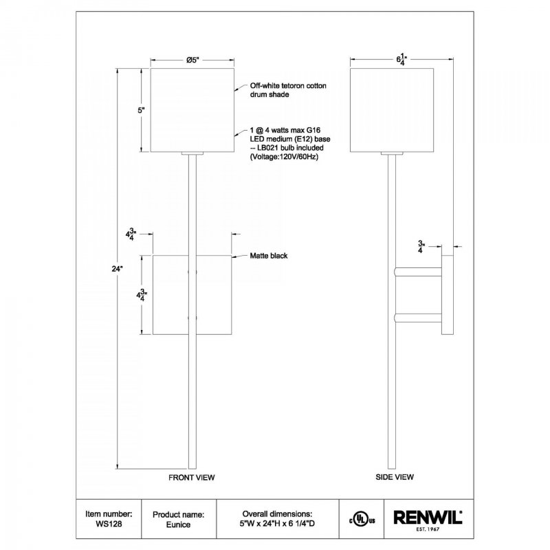 Style: WS128 | Dimensions : 5\"W X 24\"H X 6.2\"D The effortlessly chic style of a lamp is transformed into a wall sconce format in this design. With a minimalist structure and palette, this piece can fit within entryways, hallways, bedrooms and beyond. While the structure feels streamlined and sleek, it has historical elements that give it a sense of charm as well.