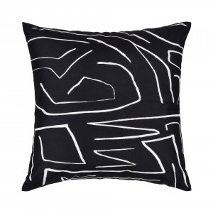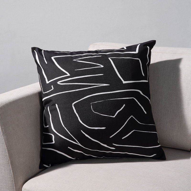 Style: PWFL1439 | Dimensions : 22\"W X 22\"H The client looking to bring a vivid print into their home without straying from a minimalist aesthetic will find this throw pillow to be a perfect fit. An abstract print with tribal-like energy allows the poly-linen pillow to stand out on a light-colored sofa, bed or bench. Best suited for modern and contemporary interiors, it pairs equally well with relaxed and sleek furnishings