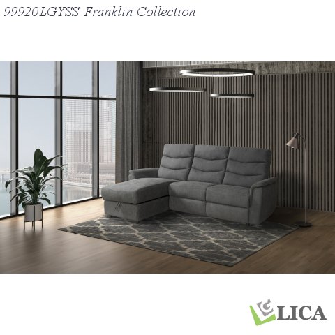 With its generous sizing and neutral grey finish, the Franklin collection makes a great addition to your transitional or contemporary living room. Triple-articulated seat backs give this sofa chaise sectional a unique look while offering plenty of cushioning, especially in combination with the padded armrests. Beautiful grey linen upholstery over foam padding and springs is a perfect marriage of tailored comfort. For a household trying to keep clutter to a minimum, the Franklin is especially practical - the left side chaise lifts up to reveal an ample storage area perfect for stowing blankets, pillows, and toys. Whether you are cozying up with the family for movie night or relaxing solo, the Franklin's attractive yet functional design is a great décor choice.