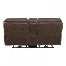 The plush modern design of the Proctor Collection provides a platform for relaxation whether watching a big game with your friends or settling in for a movie with the family. The contoured profile of the love seat is covered in brown polished microfiber, providing smooth touch to your seated experience. With the push of the power reclining mechanism, the end recliners of the love seat ease into the prone position. Centering the piece is the console unit with hidden storage as well as cup holders for convenient functional use.