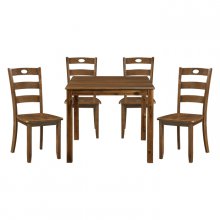 The Stowe Collection offers a conveniently paired 5-piece table and dining chairs to complete the look of your casual dining space. The transitional style of the collection features a walnut finish over the distinct grain of the acacia veneer, and a classic profile. The chairs have keyhole detail on the top rail and wood seats.