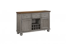 The traditional styling of the Tigard Collection lends timeless appeal to the look of your casual dining space. With subtle hints nodding to the Arts and Crafts design movement, the framed plank tabletop, ladder back side chairs, and server each feature classic lines that solidify the versatile aesthetic of the collection. Covering the padded seats of the side chairs is a neutral tone fabric upholstery, complementing the traditional two-tone cherry and gray finish of the collection’s acacia veneer. The server has drawer and behind door storage allowing for quick and convenient access to your decorative tabletop items as well as a wine rack and stemmed glassware rack.