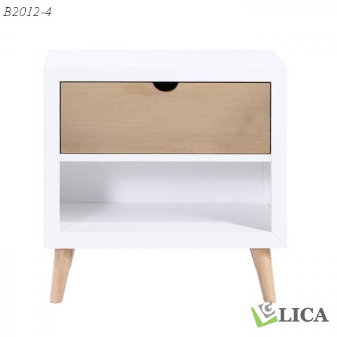 Providing the perfect landing pad for your child’s bedroom, the Asker Collection is a fun and functional addition to their space. The two-tone white and natural finish of the pine veneer is paired with the mid-century modern design to create a classic profile. The nightstand features a neutral finish on the top drawer, with an open display shelf below. A grooved hand opening centers the drawer front serving as an easy access point for drawer extension.