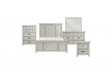 The Providence Collection’s lines and versatile finish create a classic addition for your bedroom. Oak veneer is finished in light gray, serving as a neutral canvas for your personal decorative preferences. The unfettered framed panel headboard and low-profile footboard serve as your bedroom’s focal point while antique black tone metal knob and bar hardware provide complementing contrast to the light finish of the dresser, nightstand, and chest.