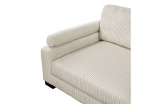 Configurable to your available space, the Traverse Collection allows for the addition and detachment of pieces for a customized seating experience. The available corner unit, armless chair and ottoman can be mixed and matched to fit your needs, creating traditional configurations from a sofa or love seat to an imaginative sectional creation. The plush beige corduroy fabric upholstery creates a plush expanse for a soft touch experience. The corner seat features two toss pillows, adjustable back and arm rest, and reversible cushions. The armless chair features a lumbar pillow, and reversible cushions. The versatility in placement of the ottoman is left to your creative vision, using it as a stand-alone unit or part of a larger configuration.